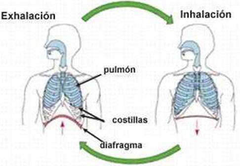 • La inspiración, o entrada de aire a los pulmones. Este mecanismo es diferente en distintos grupos de vertebrados:
